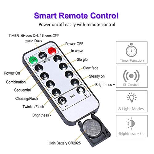 ✅ [8 trybów oświetlenia: [8 trybów oświetlenia i funkcja timera]: Możesz łatwo użyć pilota do włączania/wyłączania świateł, regulacji jasności, ustawiania timera automatycznego włączania/wyłączania i przełączania trybów z kombinacji na Slo-glo, aby migać na stałe włączanie itp. Może stworzyć romantyczną, miękką, przytulną a