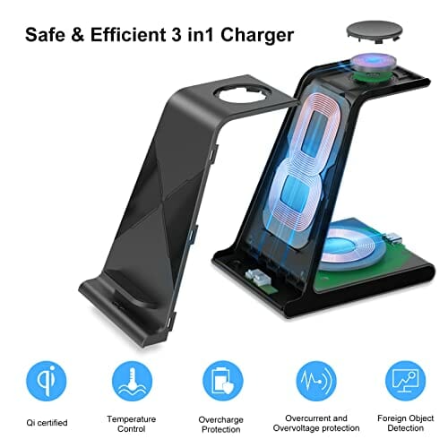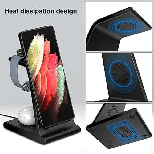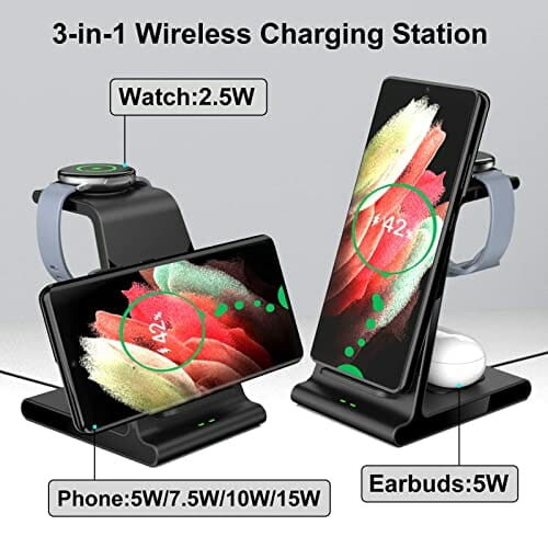 Aukvite Bezprzewodowa ładowarka 3 w 1, szybka bezprzewodowa stacja ładująca do Samsung S21 Ultra/S21/S21+/S10/S9/S8/Galaxy Z składana 3/flip 3 i budki Galaxy Watch stacja ładująca do zegarka Galaxy Watch 4/3/1
