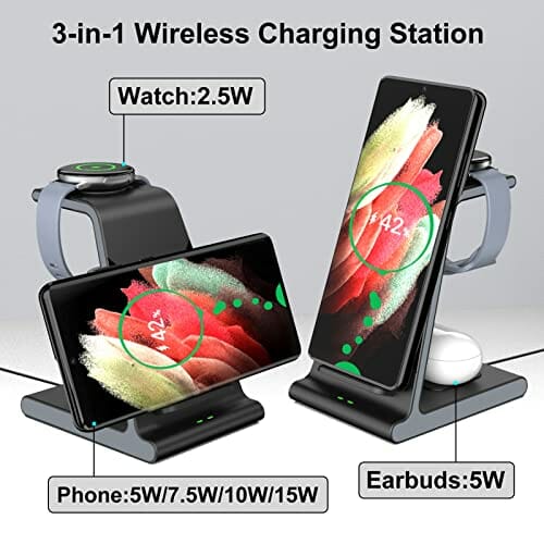 Aukvite do stacji ładującej Samsung, 3 w 1, bezprzewodowa ładowarka Samsung S23/S22/S21/Galaxy Z Fold 4/Flip 4, Galaxy Watch 5 stacja ładująca do Galaxy Watch 5/4/3, Galaxy Buds (szary)