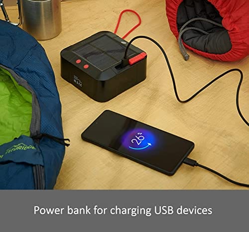 • Przenośna ładowarka podróżna – może również służyć jako power bank do ładowania urządzeń mobilnych z portu USB, idealny na kemping poza siecią. Ponadto dzięki klasie odporności na warunki atmosferyczne IP44 Twoja solarna piasta świetlna jest stworzona do użytku na zewnątrz