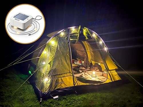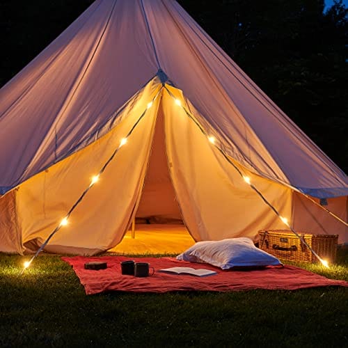 • Jasny i niezawodny – chowany nylonowy pleciony sznurek o długości 5,5 m ma 10 super jasnych węzłów LED zapewniających 100 lumenów (10 lm na węzeł) ciepłego białego oświetlenia przy najjaśniejszym ustawieniu. Łańcuch świetlny jest wyposażony w klipsy do zawieszania wzdłuż sznurka dla łatwego mocowania