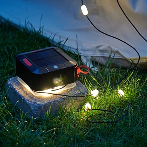 • Hub oświetlenia słonecznego – łączy w sobie funkcjonalność latarki, lampy stołowej, powerbanku i lampek łańcuchowych w jedno urządzenie dzięki innowacyjnej, zajmującej mało miejsca konstrukcji. Otwórz podstawę i rozwiń sznurki, aby udekorować namiot, altanę lub parasol przeciwsłoneczny