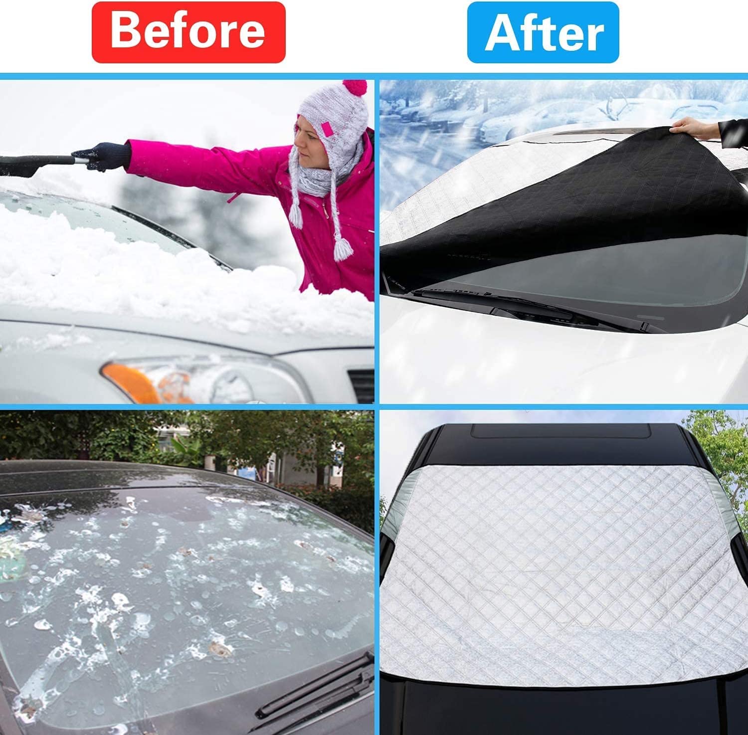 • Osłona przedniej szyby samochodu – ta osłona przedniej szyby chroni szybę samochodu przed wysoką temperaturą, dzięki czemu promienie UV skutecznie odbijają światło. Ta osłona przedniej szyby skutecznie zmniejsza temperaturę wewnątrz samochodu.