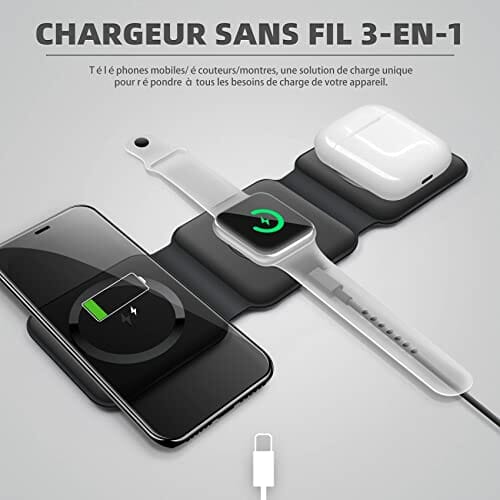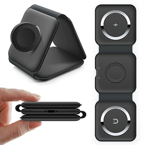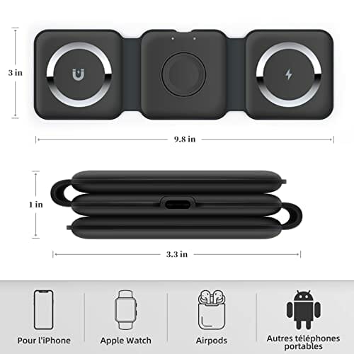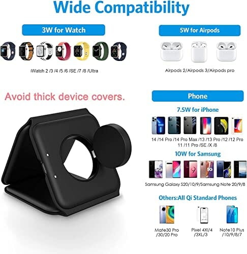Avarmora Bezprzewodowa ładowarka 3 w 1, składana stacja ładująca Qi, indukcyjna stacja ładująca do słuchawek bezprzewodowych, Apple Watch i iPhone 14/13/12/11/Pro/Max/X/XS/XR/8/8Plus