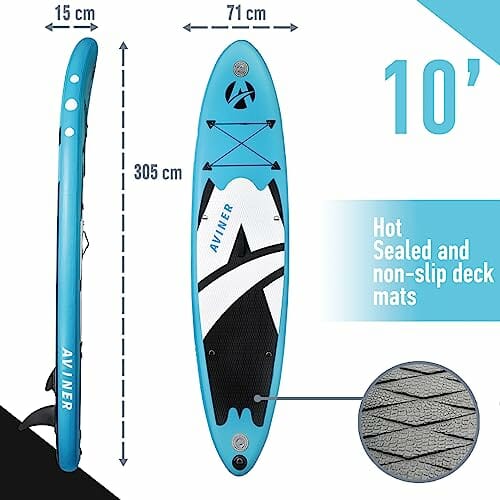 SUP Nadmuchiwana Deska do paddleboardingu, 150KG Max/ 305×71×15cm, Stand up Paddle Board, Dmuchana Lekka, z Pompką Regulowanym Wiosłem, Jasnoniebieski