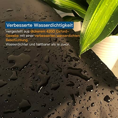 Pokrowiec na meble: Pokrowiec na meble jest wyposażony w wodoodporną membranę na powierzchni i wodoodporną powłokę PU po wewnętrznej stronie, aby upewnić się, że meble zawsze pozostaną suche.