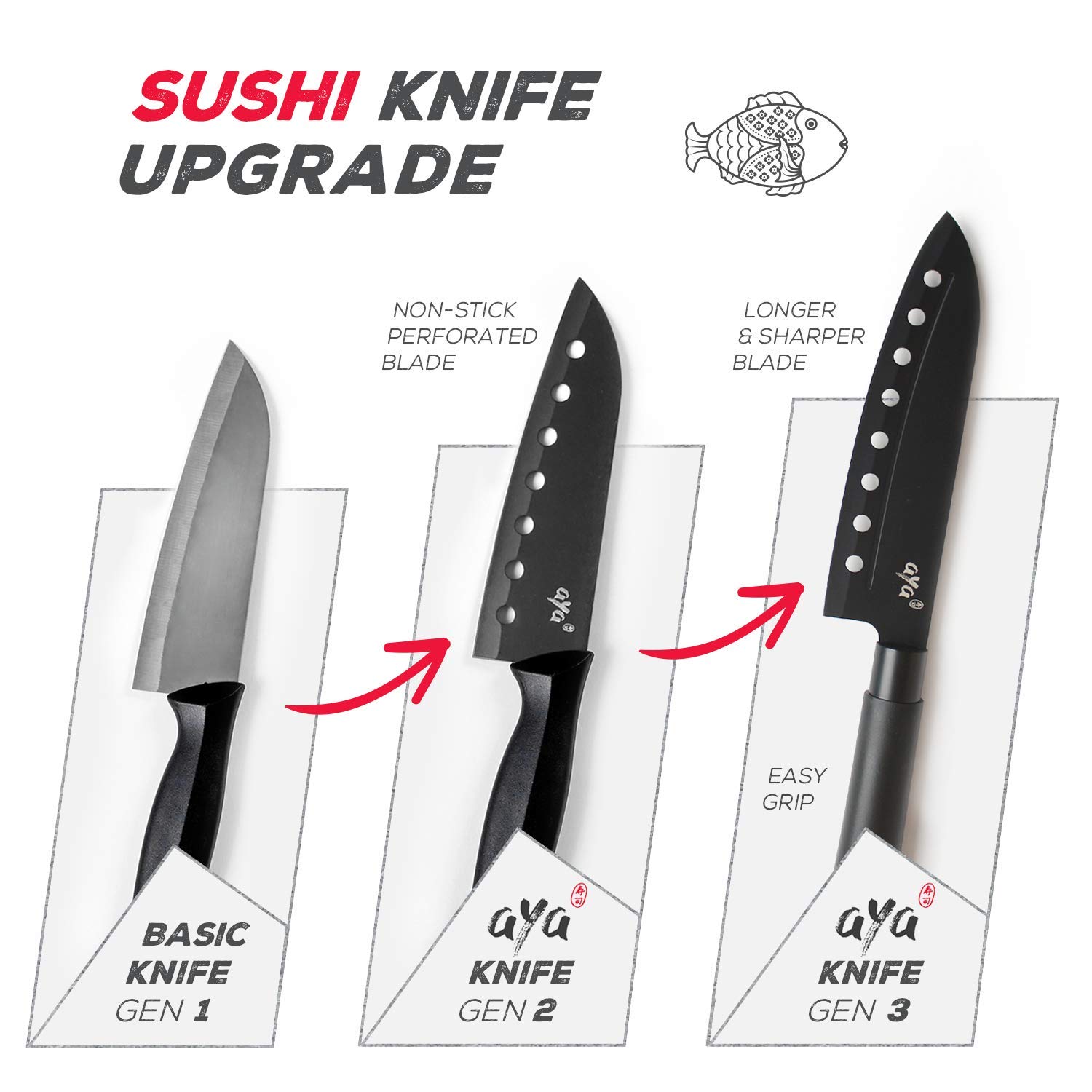 AYA zestaw do sushi – profesjonalny nóż, bambusowy, bezpieczny (AYA sushi set – professional knife, bamboo, safe)