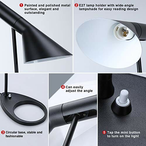 Barcelona LED lampa biurkowa, nowoczesne wzornictwo, skandynawski metal, podstawa E27 w kolorze czarnym, do czytania, nauki, oświetlenia wnętrza, biura, stolika nocnego, salonu, sypialni, gabinetu