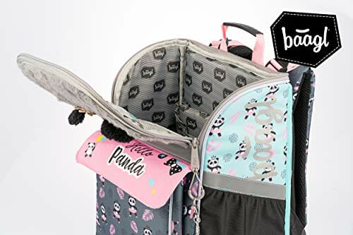 Tornister szkolny dla dziewczynki, do 1. klasy, ergonomiczny plecak szkolny dla dzieci, z pasem piersiowym, tornister do szkoły podstawowej, Panda (wi