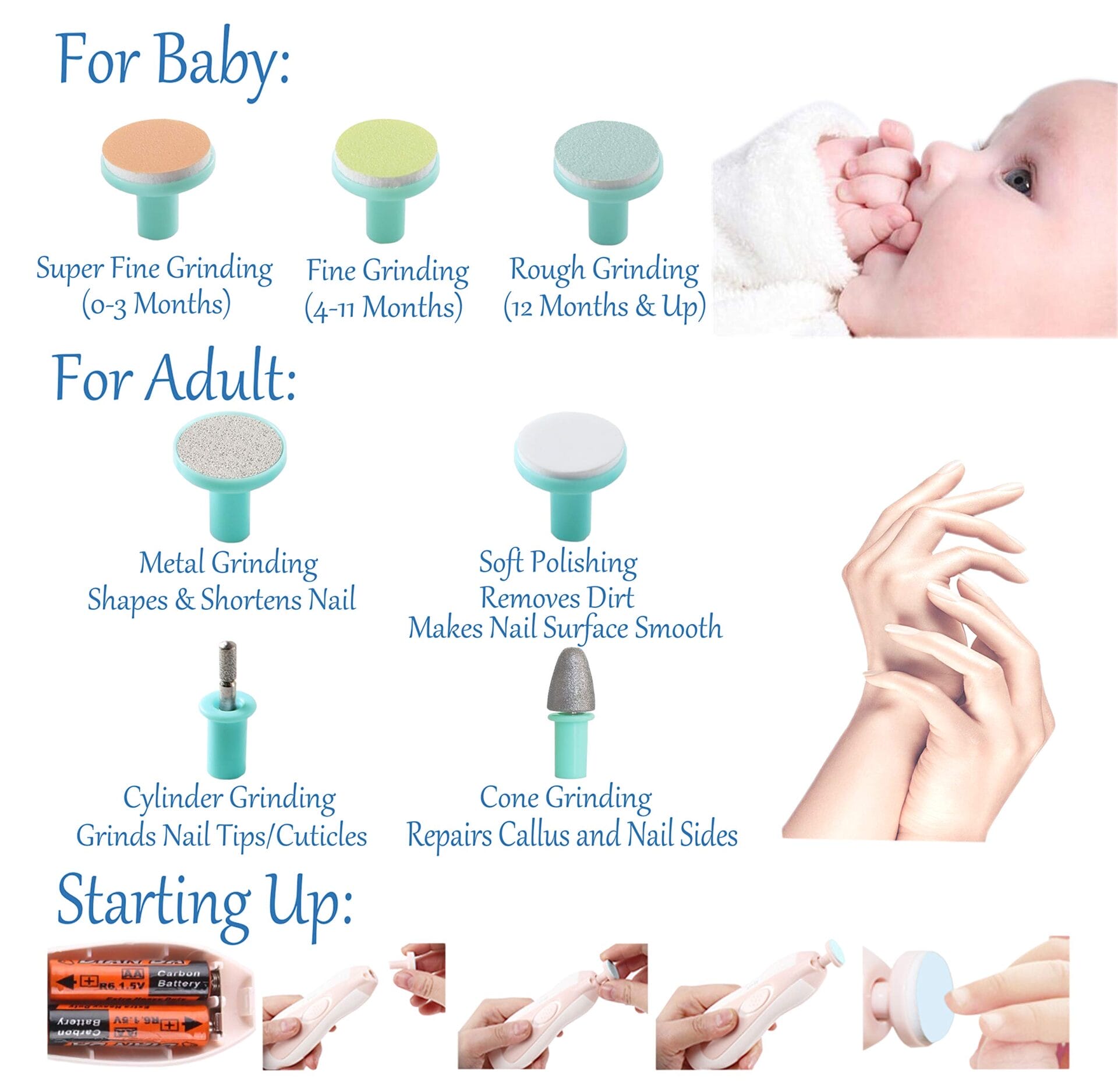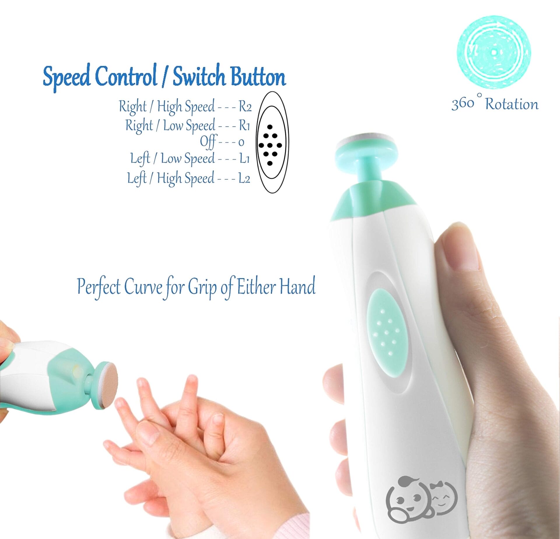 ✅ ✅ CICHY SZept: ✅ CICHY SZept I OŚWIETLENIE LED: Pilnik do paznokci jest napędzany mocnym, ale cichym SZeptem silnikiem. Dzięki lampce LED skierowanej na paznokcie możesz przyciąć paznokieć swojemu dziecku nawet wtedy, gdy śpi!