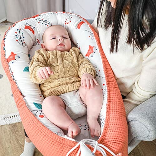 Ochraniacz niemowlęcy Babynest 90×50 cm – kokon Ręcznie robiony dwustronny bawełniany wafel z babynest Lis Pomarańczowy