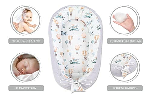 • RĘCZNIE SZYTY, SZYTY OD SERCA – ręcznie robiony kokon idealnie nadaje się jako prezent na baby shower lub urodziny. Wizualnie gniazdka dopasowują się do każdego pokoju dziecięcego i stanowią ozdobę każdego łóżeczka dziecięcego.