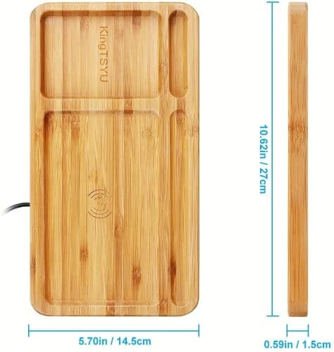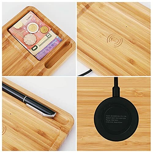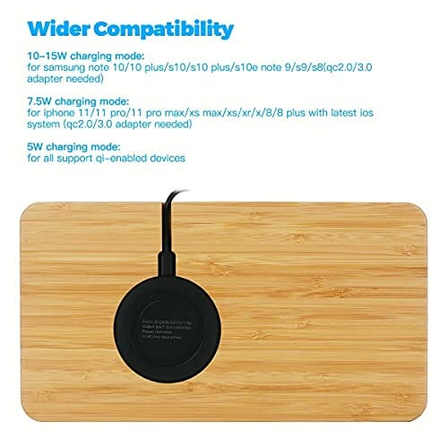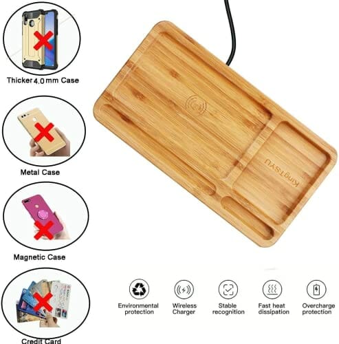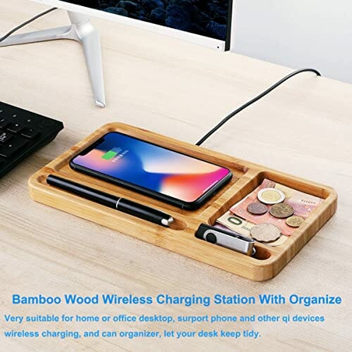 15W Bambusowa Bezprzewodowa ładowarka z Organizerem Drewniana Bezprzewodowa Indukcyjna Stacja ładująca do Iphone 13/12/8 Plus, Samsung Galaxy S9/S8/S7 Edge, Watch/Airpods Certyfikat Qi Kingtsyu