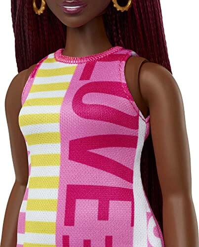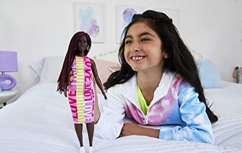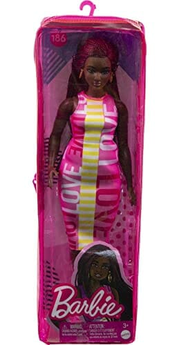 Ta wyjątkowa Barbie Fashionistas Lalka #186 to idealny prezent dla dzieci w wieku od 3 do 8 lat. Jej krągłe kształty i wzorzysta sukienka bez rękawów sprawiają, że jest ona niezwykle urocza. Dodatkowo, lalka ma purpurowy warkoczyk i kolczyki-koła, które dodają jej uroku.