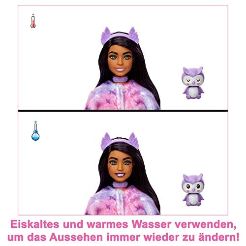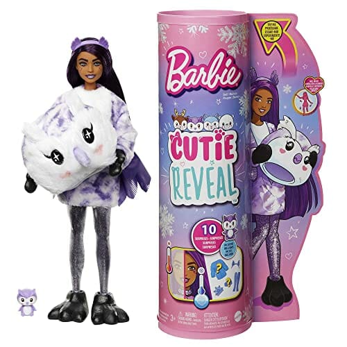 Barbie Cutie Reveal Seria Zimowa Kraina Lalka z kostiumem sowy i 10 niespodziankami to idealny prezent dla dzieci od 3 roku życia. Ta wyjątkowa lalka zachwyci każdego malucha! W zestawie znajduje się lalka w kostiumie sowy, a także 10 niespodzianek, w tym minizwierzątko, które zmienia kolor.