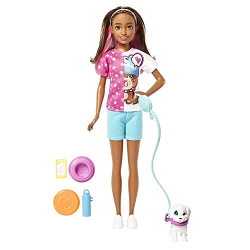 Barbie HKD77 – Lalka Skipper i opiekunka do psów zestaw zabaw z pieskiem i 5 akcesoriami, zabawki dla lalek od 3 lat