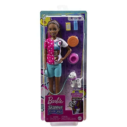 ✅ Lalka Skipper ma: Lalka Skipper ma na sobie strój inspirowany filmem, a w zestawie jest też uroczy piesek i akcesoria do opieki nad nim
