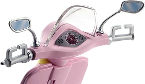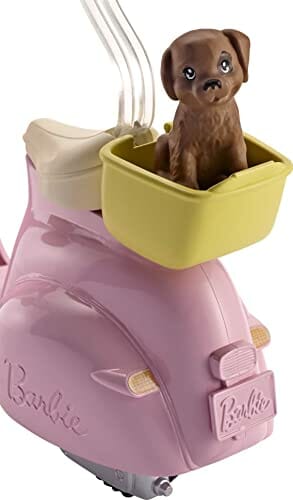 Lalka Barbie jest wyposażona w skuter, który może pomieścić szczeniaczka. Skuter jest wyposażony w dwa kółka, które pozwalają na szybkie i bezpieczne przemieszczanie się po całym domu. Barbie ma piękny strój i wygląda jak prawdziwa gwiazda.