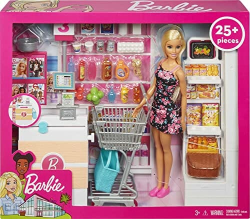 Lalka Barbie FRP01 to idealny prezent dla każdego małego kolekcjonera. Ta wyjątkowa zabawka zawiera sklepik spożywczy z ruchomym wózkiem i działającą taśmą przy kasie. Dzięki temu dzieci mogą wyobrażać sobie, że są w sklepie i dokonują zakupów.