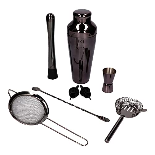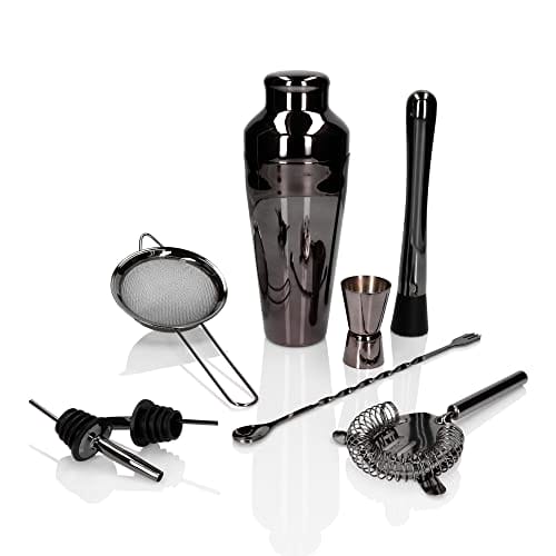 Zestaw barmański 8 el shaker paryski – czarny połysk: Gotowy zestaw do miksowania koktajli, wygodny w użyciu, idealny na prezent, solidna jakość wykonania