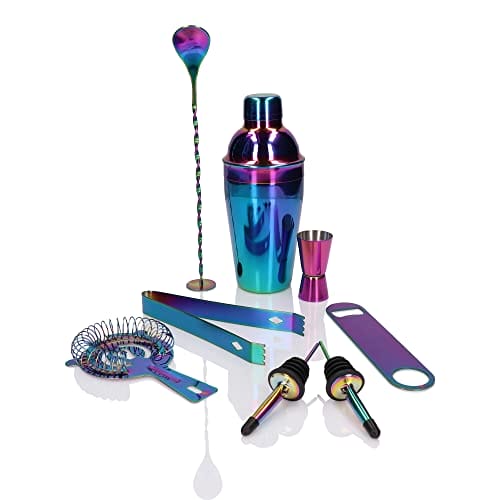 Zestaw barmański 8 elementów 550 ml tęczowy – gotowy zestaw do miksowania koktajli, idealny na prezent, solidna jakość wykonania