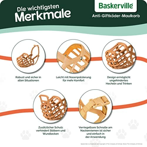 • Zatrzymaj całkowicie zachowanie swojego psa – tradycyjny design Baskerville zapobiega przechwycaniu żywności i szkodliwemu wyciekowi. Idealnie nadaje się do: obsługi i pielęgnacji, ochrony ran, nadzorowana swoboda dla psów pełnowartościowych, zapobiega zmywaniu