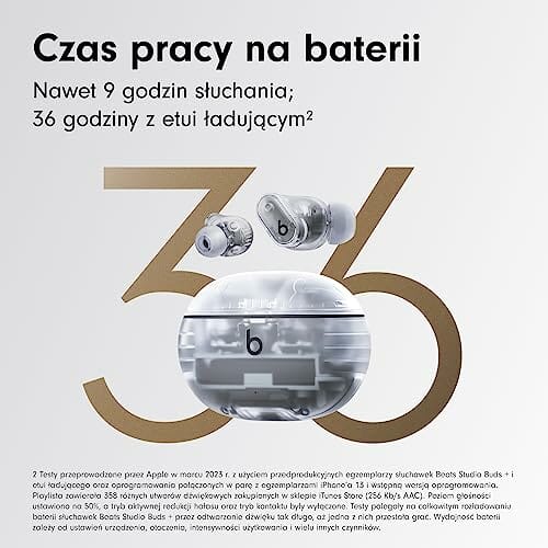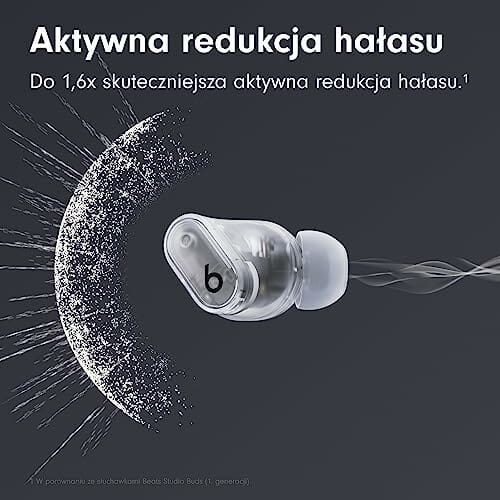 Beats Studio Buds + | prawdziwie bezprzewodowe słuchawki douszne z redukcją hałasu, rozszerzona obsługa urządzeń Apple i Android, słuchawki Bluetooth odporne na działanie potu – przezroczysty