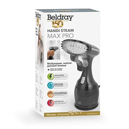 Beldray BEL0932SL-VDEEU7 Parownica reczna Max Pro, parownica do ubran, wielofunkcyjna, pionowa, lekka i wydajna, kompaktowa konstrukcja, szczotka do tkanin, wyjmowany zbiornik na wode, para, 1500 W