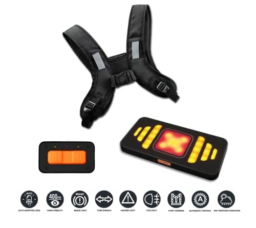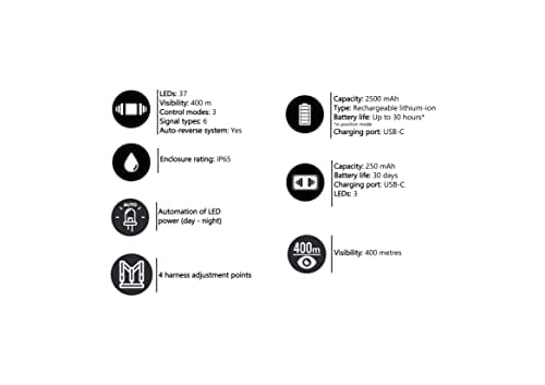 • Robust, anpassungsfähig und wasserdicht: kann über jedem Kleidungsstück oder Rucksack getragen werden (Rucksackadapter und Reflektorrucksack separat erhältlich). Material in Militärqualität (4-Punkt-Gurtband) und IP65 wasserdicht