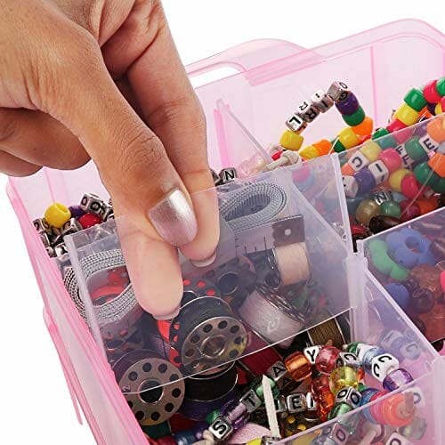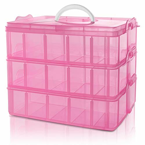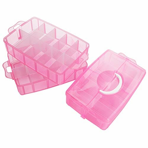 Belle Vous 3-Poziomowy Różowy Przezroczysty Plastikowy Pojemnik do Piętrowego Układania – Regulowane Podziałki – Maks 30 Przegródek – Pojemnik na Zaba