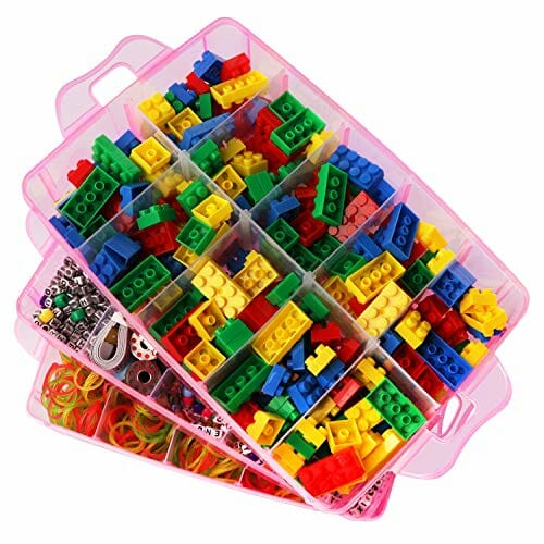 Belle Vous 3-Poziomowy Różowy Przezroczysty Plastikowy Pojemnik do Piętrowego Układania – Regulowane Podziałki – Maks 30 Przegródek – Pojemnik na Zabawki, Biżuterię, Akcesoria, Narzędzia