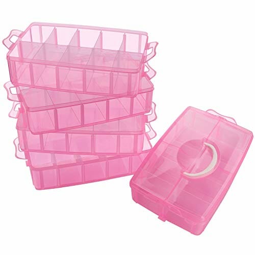 Belle Vous 5-Poziomowy Różowy Przezroczysty Plastikowy Pojemnik do Piętrowego Układania – Regulowane Podziałki – Maks 50 Przegródek – Pojemnik na Zaba