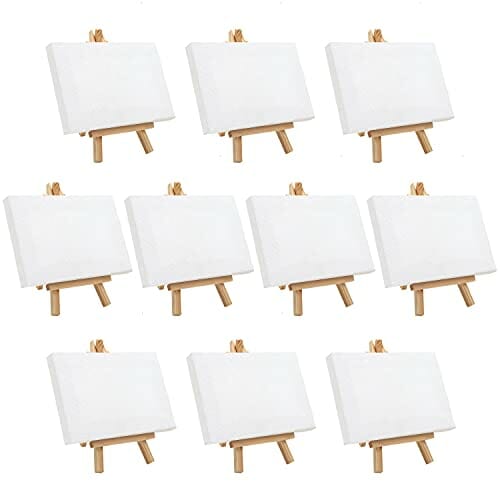 Belle Vous Mini płótno z drewnianym uchwytem na obraz stojak sztaluga (10 sztuk) – wys. 15,5 cm x szer. 8,9 cm – wstępnie zagruntowane, puste płótno – sztaluga drewno mała do malowania i rysowania,