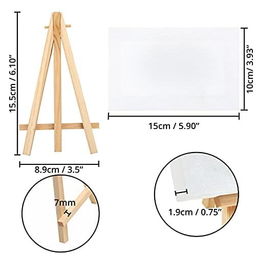 ✅ Zestaw mini płótna: Zestaw mini płótna i sztafli: w naszym zestawie znajduje się 10 mini płócien i 10 sztalug stołowych. Płótna mają długość 15 x 10 cm i grubość 1,9 cm. Płótna są naciągnięte, zagruntowane i gotowe do użycia. Są one wykonane z bawełny. Sztalugi są wykonane z drewna i mają wymiary wys. 15,5 x szer. 8,9