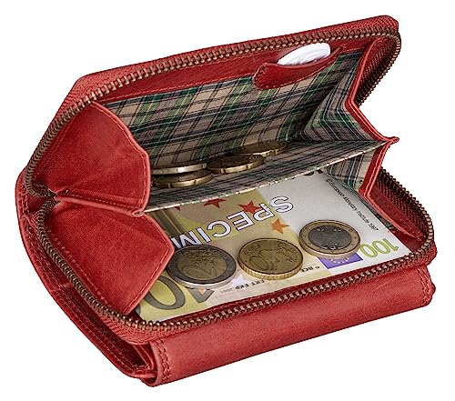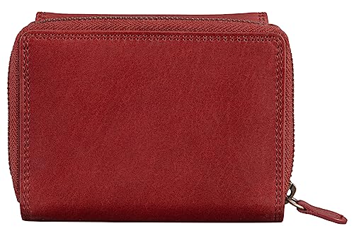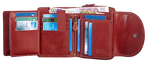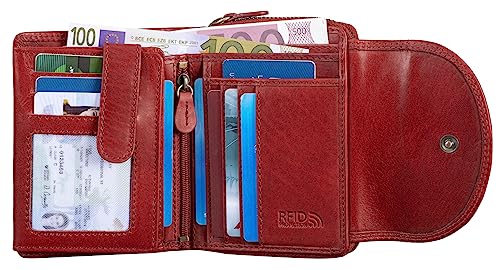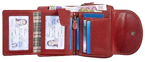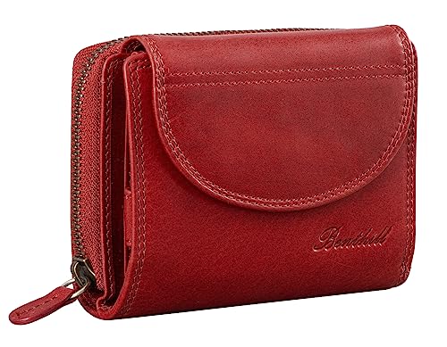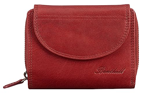 Benthill Damski portfel z prawdziwej skóry – kompaktowy skórzany portfel z dużą ilością miejsca – wysokiej jakości portfel damski z wieloma przegródkami, czerwony, Vintage