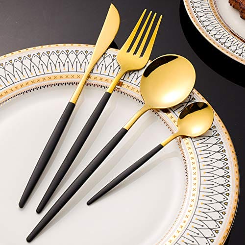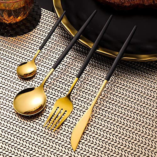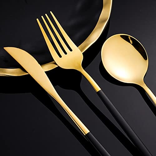 Black and Gold Cutlery for 6 PeopleCOPOTI Black Handle 24