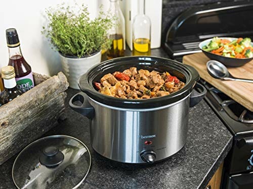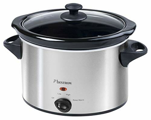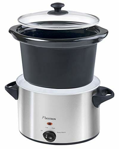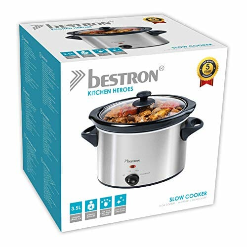 Einzelheiten: Multifunktionaler Slow Cooker zum schonenden Garen von Fleisch, Gemüse, Suppen, uvm., Erhalt von Geschmack und Nährstoffen dank Niedrigtemperatur – Perfekt für Familien: Füllmenge (3,5 l) ideal für Portionen für 4 Personen, 2 Temperatureinstellungen (niedrig – hoch), Warmhaltefunktion – Einfache und sichere Bedienung: Automatische Temperaturregelung, Ein- und Ausschalter mit Kontrollleuchte und Glasdeckel zur Überwachung des Vorgangs – Wärmeisolierte Handgriffe, Abschaltautomatik, Überhitzungsschutz, Herausnehmbare Innenwanne und Glasdeckel spülmaschinengeeignet, Kabellänge: 70 cm – Lieferumfang: 1 Bestron Dampfgarer, Glasdeckel, Innenwanne, Inkl. Kochtipp Booklet, 180 W, 3,5l, Maße: 33,5×23,5×25 cm, Gewicht: 3,7 kg, Material: Edelstahl/Keramik/Kunststoff, ASC350