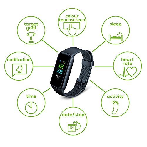 Beurer AS 99 Pulse Bluetooth – Czujnik aktywności z kolorowym ekranem dotykowym, pomiar tętna na nadgarstku, śledzenie aktywności i snu, oraz powiadomienia o ruchu