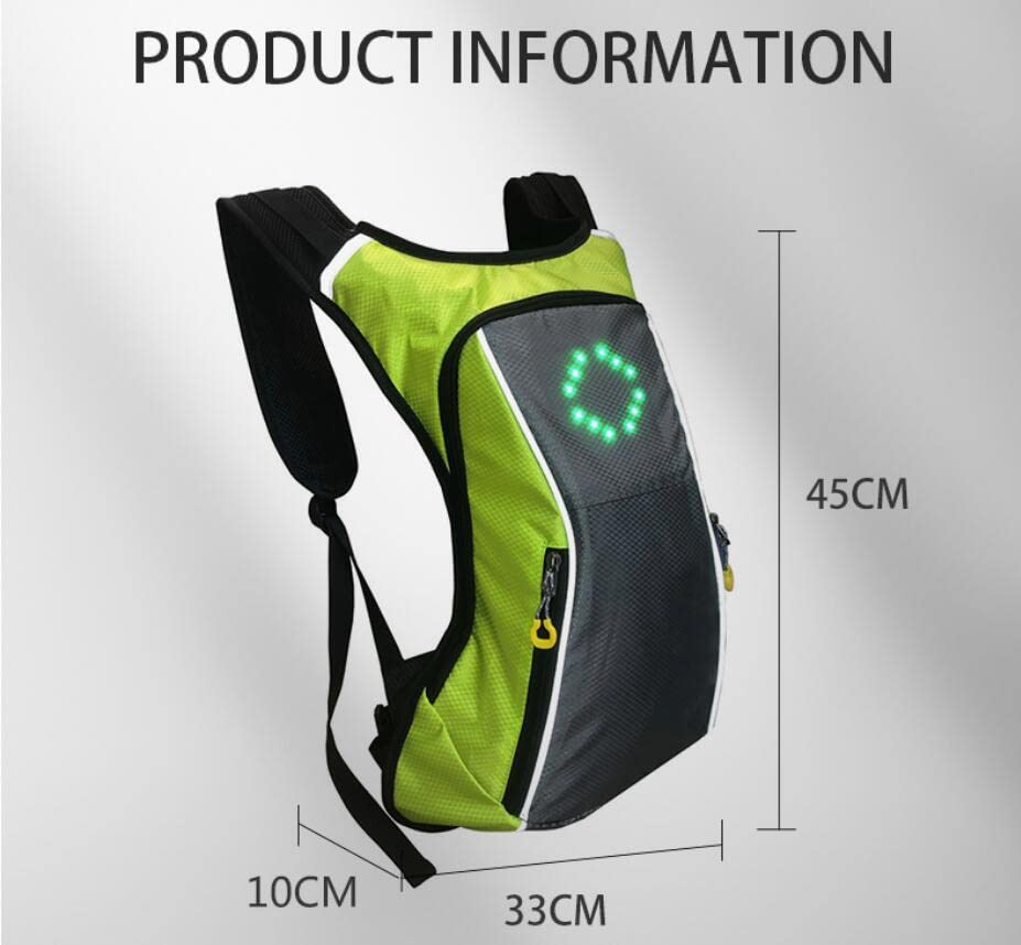 • Błyszczący plecak – wyposażony w 5 wyraźnych i dobrze widocznych sygnałów drogowych, dzięki czemu kierowcy mogą lepiej Cię zauważyć i przypominać im o zachowaniu dystansu. Niezrównana żywotność baterii do 15 godzin na naładowanie. Jedź nawet w bezstresową pogodę, ta torba jest wodoodporna dzięki