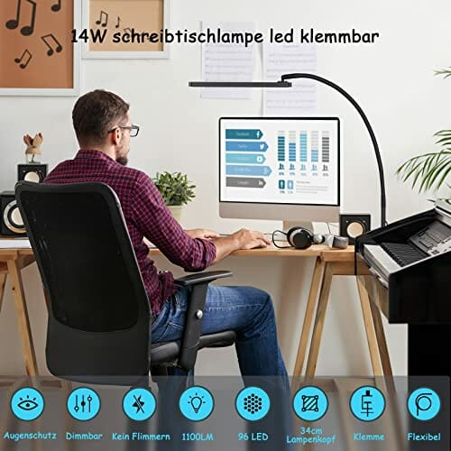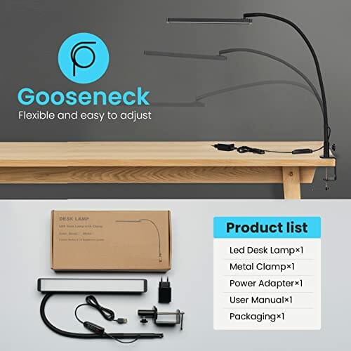 BIENSER Lampa Biurkowa LED z Zaciskiem (A-Czarny)