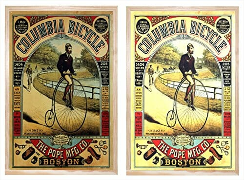Obraz z drewnianą ramą, podświetlenie tła, rower Columbia
