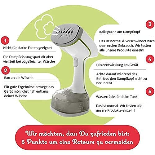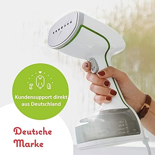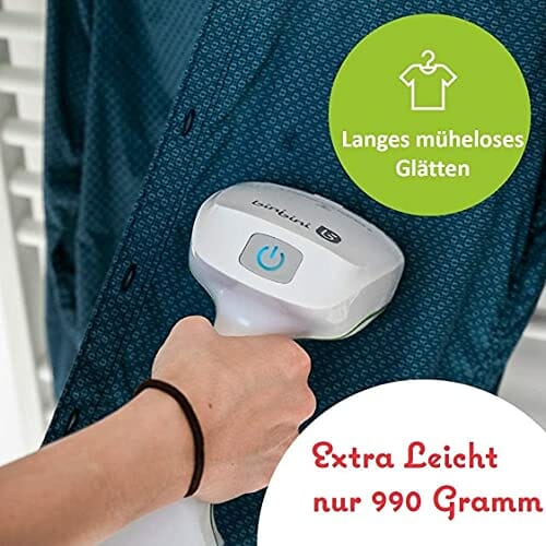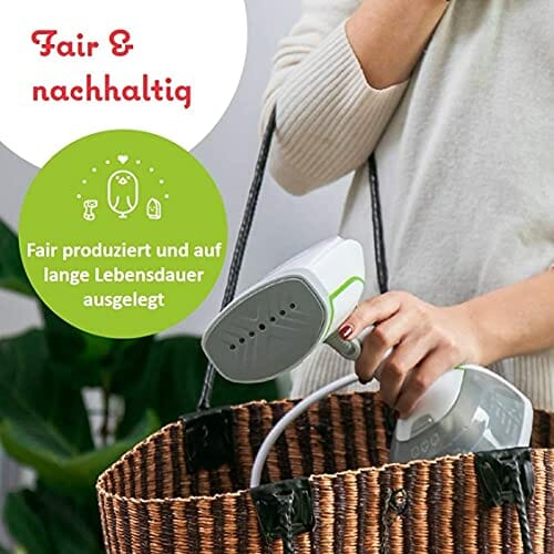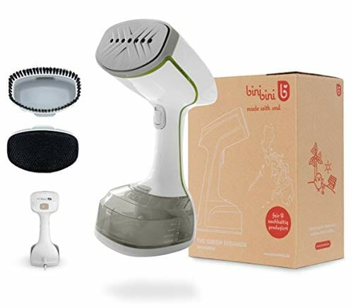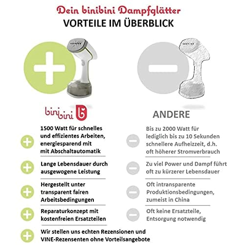 Binibini prasownica parowa The Green Steamer zrównoważona i uczciwa (1500 W, funkcja ECO, turbo-para, automatyczne wyłączanie, zbiornik o pojemności 230 ml, system zapobiegający kapaniu, gotowy do pracy w <30 sekund)