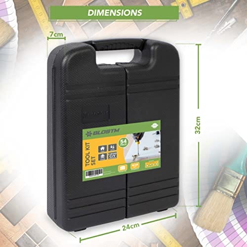 BLOSTM 54pcs zestaw narzędzi – zestaw narzędzi biurowych i domowych z niezbędnymi narzędziami ręcznymi do projektów DIY i napraw gospodarstw domowych – zawiera przenośne pudełko do przechowywania