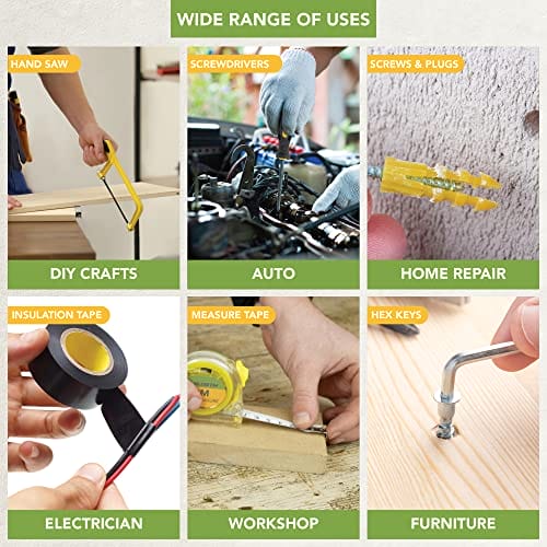 ✅ Szerokie spektrum zastosowań: Szerokie spektrum zastosowań – Ten 100-elementowy zestaw narzędzi wielofunkcyjnych jest idealny do konserwacji samochodów, prac remontowo-budowlanych, regularnych napraw domowych i rutynowych prac gospodarstwa domowego. Wszystkie ważne narzędzia są zawarte w tym zestawie zarówno dla doświadczonych m