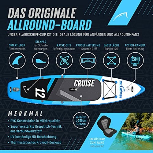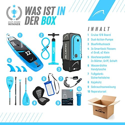 Napisz pierwszą opinię o „Bluefin Cruise SUP Board Set | nadmuchiwana deska do paddleboardingu | 15 cm grubości | wiosło z włókna szklanego | siedzisko kajakowe | kompletne akcesoria”