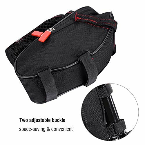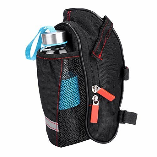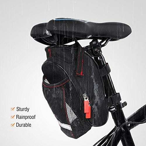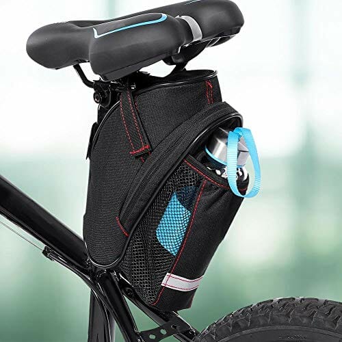 • [Duża pojemność] Torba na siedzenie rowerowe o dużej pojemności do zestawu narzędzi naprawczych, zapasowa rurka, pompowanie CO2, opony, przekąski, portfele, klucz, telefon komórkowy. Z dodatkową siatkową kieszenią na butelkę wody.