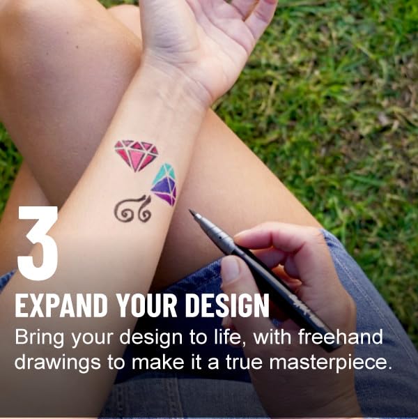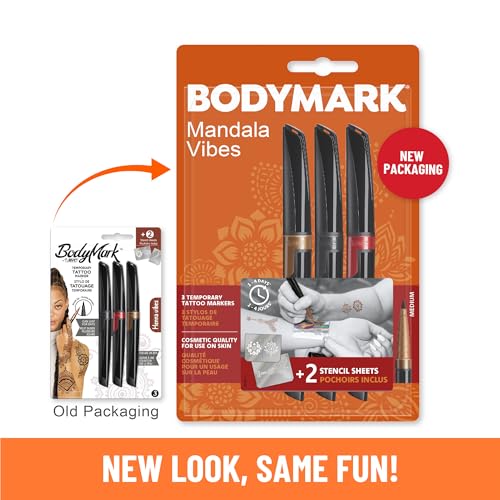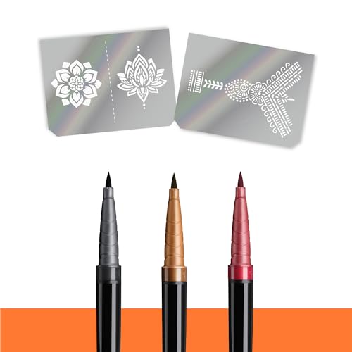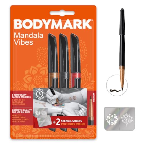- Erstellen Sie Ihre eigenen temporären Tattoos mit diesem Tattoo Pen Henna Vibes Set von BodyMark by BIC mit 3 Markern und 2 Schablonenblättern