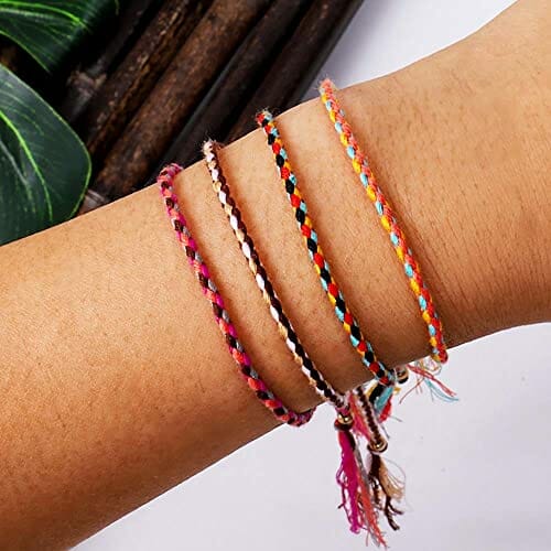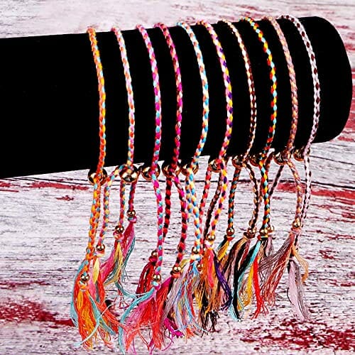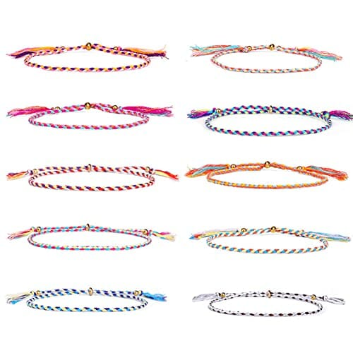 Boonee 10 Stück Damen Armband Stoff Geflochten Fußkettchen Quaste Freundschaft Armbänder Bunte Verstellbar Dünn Seil Handgefertigt Geschenk für Beste Freundin Geburtstag Weihnachten für Mädchen