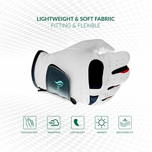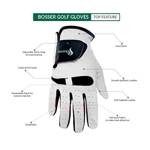 BOSSER Męskie Rękawice Golfowe ze Skóry i Elastanu dla Lewej Ręki, Ergonomiczne