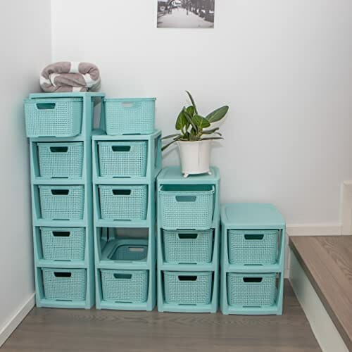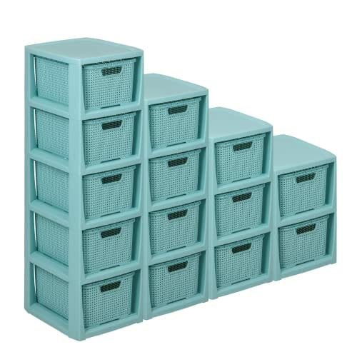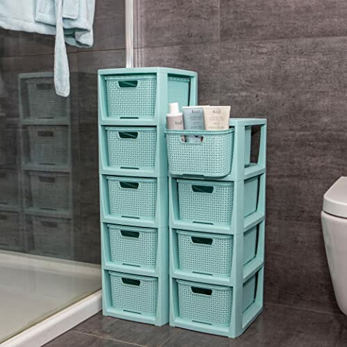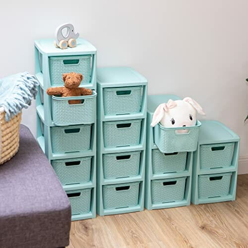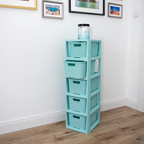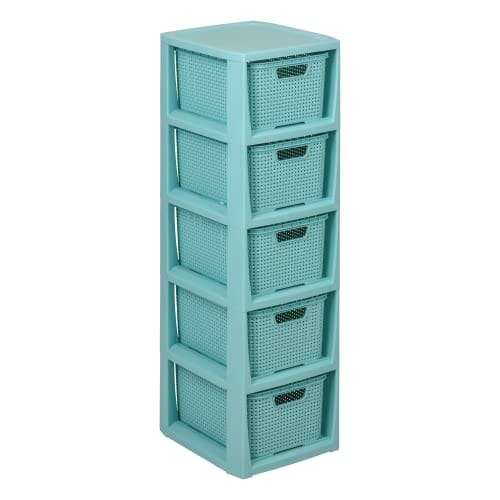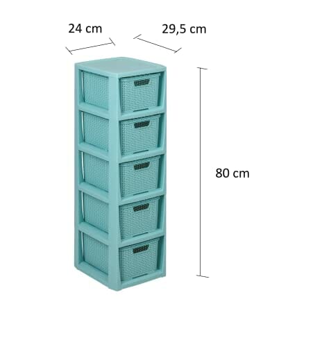 BranQ Regał rattanowy Home essential, tworzywo sztuczne PP bez BPA, miętowy, 29,5 x 24 x 80 cm, 5 koszy